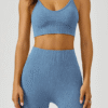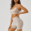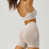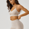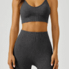 Conjunto deportivo seamless con acabado levemente deslavado. Incluye top con copas extraíbles para mayor comodidad con ajuste personalizado y short de pretina alta. Tejido elástico ultra suave que moldea y se adapta al cuerpo. No transparenta ni se enrolla.