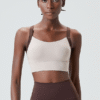 Top deportivo de diseño bicolor con copas incorporadas. Brinda soporte medio-alto y ajuste firme para entrenar con estilo, seguridad y libertad de movimiento.
