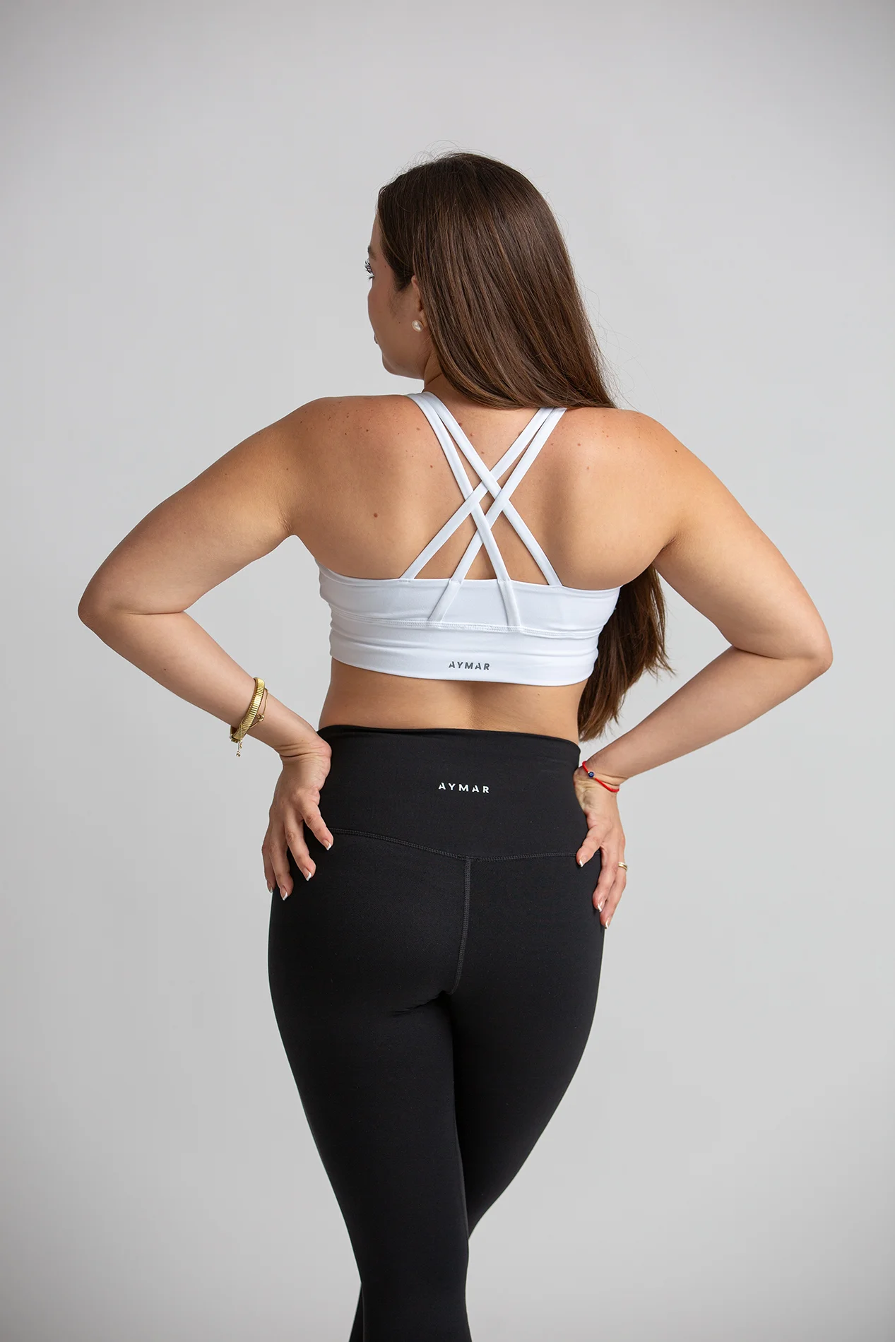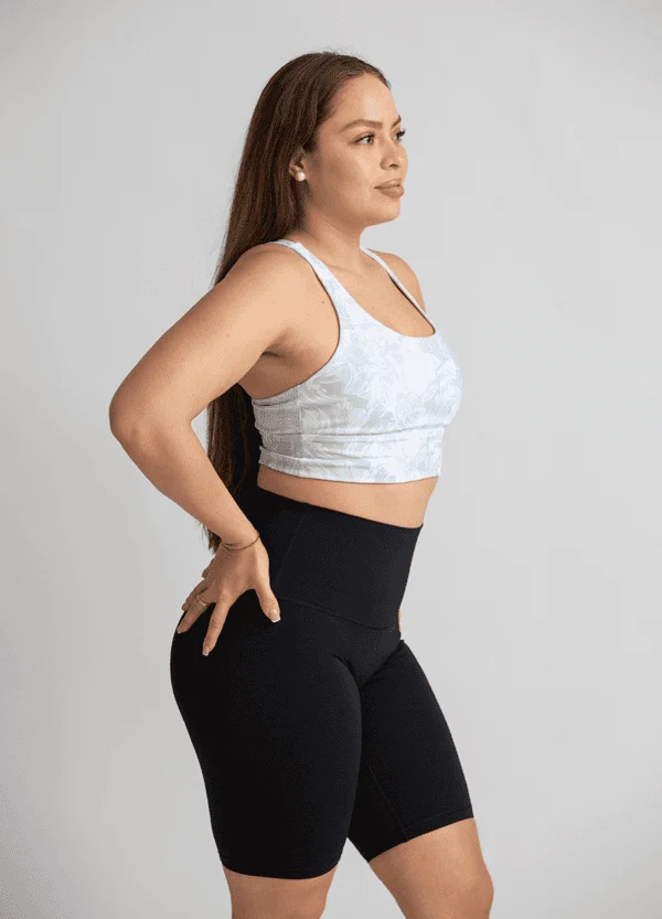 Sport bra alessa de tirantes cruzados y estampado sutil en azul cielo.